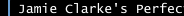 Ein denkwürdiges Konzert von Jamie Clarke, dem ehemaligen Gitarristen der Punkband "The Pogues" im Erlanger Musikkeller "Strohhalm" am 10.01.2008. Vor einem kleinen, aber illustren Kreis von rund 20 Konzertbesuchern lassen sich der leidenschaftliche Musiker und seine drei Mitstreiter von "Jamie Clarke's Perfect" nicht anmerken, dass der Rahmen ein wenig klein geraten ist. Nach weit über zwei Stunden lebendigster Rockmusik und weit, weit nach Mitternacht verlässt das Restpublikum müde und abgekämpft den kleinen Musikkeller - echte Musikleidenschaft, die man fühlen kann...